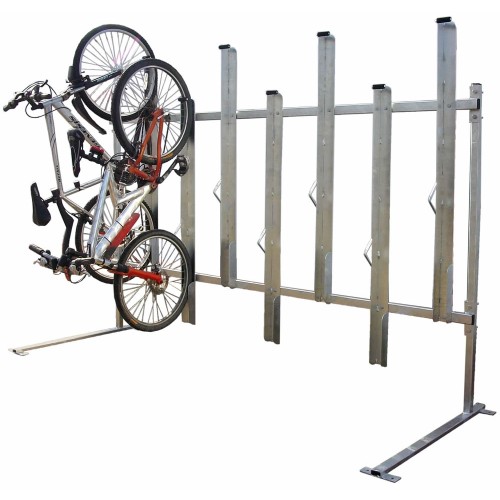 Product overview:  The Eltham Cycle Rack is a popular choice when space is limited. It secures the bikes in a completely vertical position in order to maximise the cycle parking capacity. The rack comes complete with locking loops to secure the frame, and a wheel which can help contribute towards gaining ENE8 Cycle storage credits when used in the appropriate situation, under the Code for Sustainable Homes.