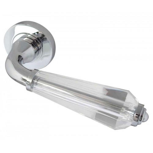 Features a fluted glass central lever upon a satin chrome shaft.