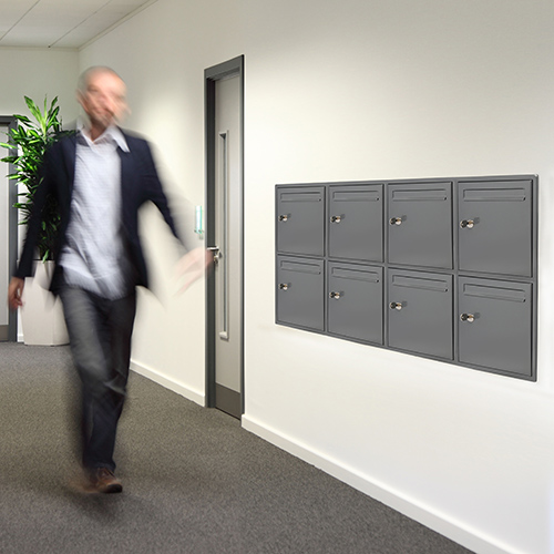 In most cases of front delivery and front retrieval, the mailboxes are mounted onto or flush into the wall, whether this is internally or externally. All boxes conform to British Standard EN13724, and comply with the New Homes Guide Section 21 & 24 by Secured By Design.
