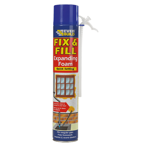 Fix & Fill Expanding Foam is a quick setting polyurethane based foam which expands greatly on application and yields up to 50 times original can contents. Can be cut, sawn, plastered and sealed over after approximately one hour. Fills irregular gaps, fixes framework, insulates and sound deadens.