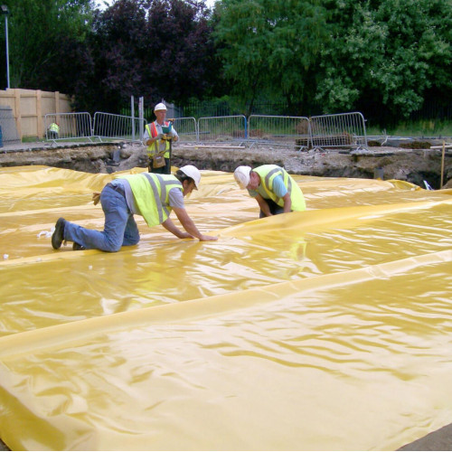 Visqueen Low Permeability Gas Membrane is a robust co-polymer thermoplastic gas membrane, 0.5mm thick, yellow in colour and supplied 4m x 12.5m in a center folded roll.
